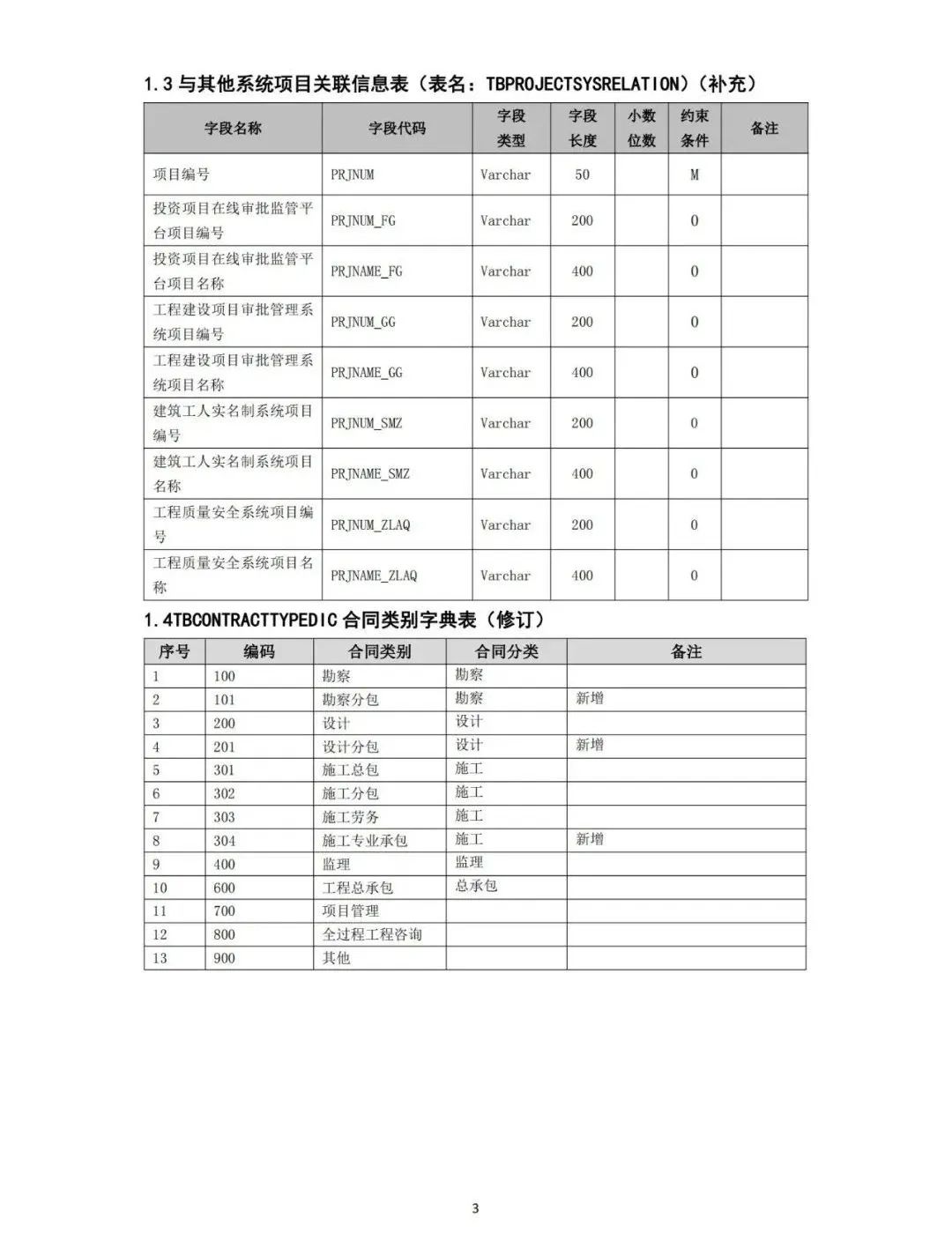 按照建設(shè)工程企業(yè)資質(zhì)標(biāo)準(zhǔn)要求,我部對全國建筑市場監(jiān)管公共服務(wù)平臺(以下簡稱全國平臺)工程項目信息數(shù)據(jù)標(biāo)準(zhǔn)進行了修訂,修訂后的工程項目信息數(shù)據(jù)標(biāo)準(zhǔn)見附件。請省級住房城鄉(xiāng)建設(shè)主管部門抓緊修訂完善省級建筑市場監(jiān)管一體化工作平臺相關(guān)數(shù)據(jù)標(biāo)準(zhǔn),做好平臺改造升級工作,于2024年3月31日前完成與全國平臺對接。
