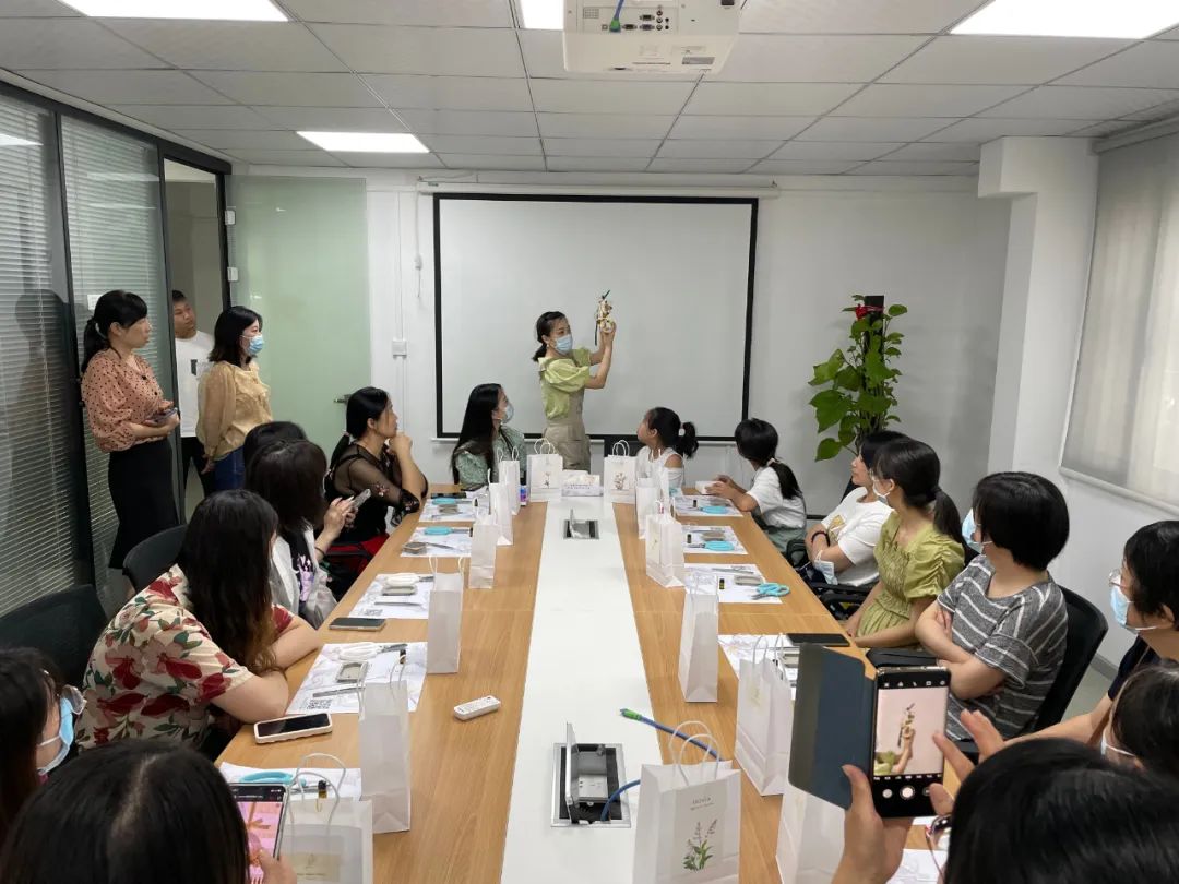 活動(dòng)邀請(qǐng)了老師現(xiàn)場(chǎng)教學(xué)制作香薰蠟片、搭配花材及注意事項(xiàng)。跟著老師講解的步驟,構(gòu)思、加熱、滴入精油攪拌、倒入模具裝飾、靜待凝固,一塊塊精致美觀的香薰蠟片就制作完成了。